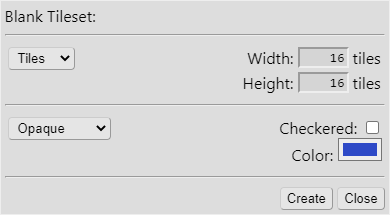 In the tileset panel, change Opaque to Transparent. This will ensure the background is empty when it is created. Click the Create button and the new tileset will be added to the project.