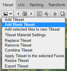 Find the Tileset menu button located in the Tileset panel. Clicking it will reveal a menu that holds the option Add Blank Tileset. Click this option.