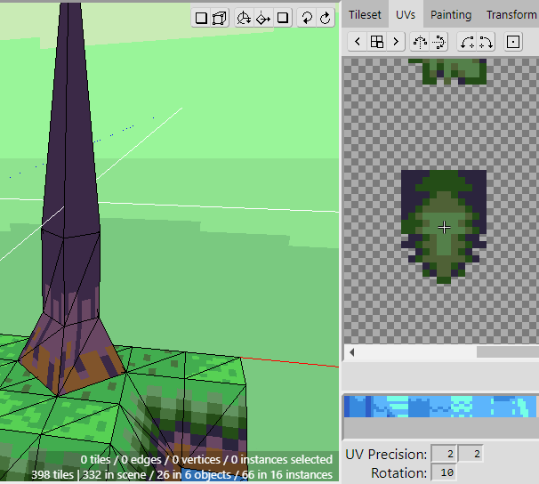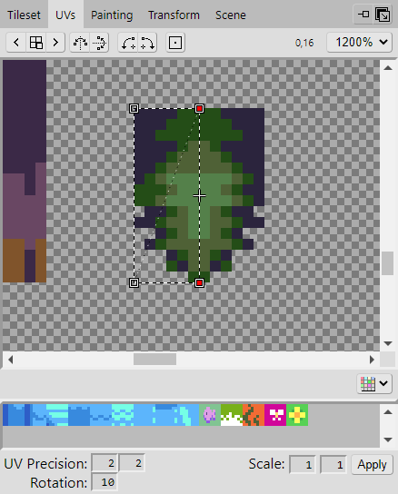Begin by selecting a section of the tree branch in the Tileset. We'll adjust the UVs of the tile after placing it into the scene, so it doesn't matter that it isn't completely selected.
