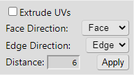 Then, open the Transform panel and scroll to the bottom to the Extrude section. Uncheck the Extrude UVs option so that extrusions use the Tilebrush UV coordinates for newly extruded tiles. Also, set the Distance to 6 pixels.