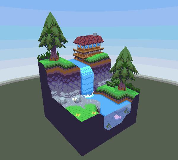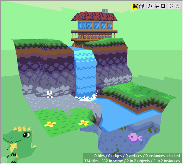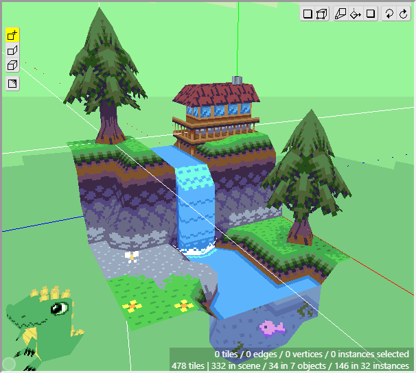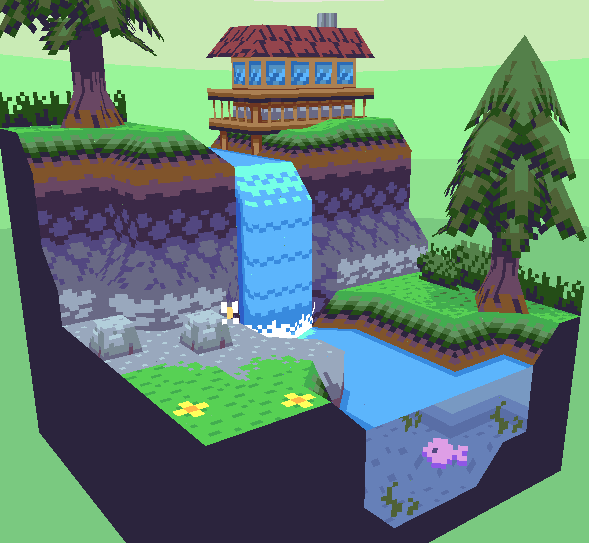 Congratulations on successfully completing the waterfall scene! You have learnt many skills through this process, and should now be able to apply them all to the future work that you do. I hope that this has helped you become more familiar with the functions in Crocotile 3d. There is quite a lot that has not been covered in this guide, so I suggest reading the documentation to learn more, or watch the youtube videos on the Crocotile youtube channel. If you have any feedback or suggestions for future guides, please get in contact. If anything was confusing or could be improved, get in touch and let me know. Thanks! 🐊