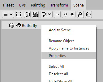 Now we'll make another Tree Branch object slightly smaller than the current ones. We can clone the Object so that we don't have to recreate it. Open the Scene panel and right-click on the Tree Branch object in the Object list. In the context-menu that appears, select Clone Object.
