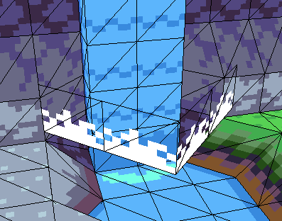 As a 3d renderer renders to the screen, it will use the UVs to help determine what to sample from the texture image (in this case our tileset). Due to inaccuracies with floating point numbers, when sampling along the edges of the UVs, it may sample a pixel that resides outside of the area defined by the UVs. This may cause noticeable seams if you have drastically different pixel colors neighboring each other along the edges. In our case, we have transparent pixels neighboring opaque pixels, which results in the appearance of small holes and gaps. These visual artifacts can be avoided, so let's take a look at some solutions.
