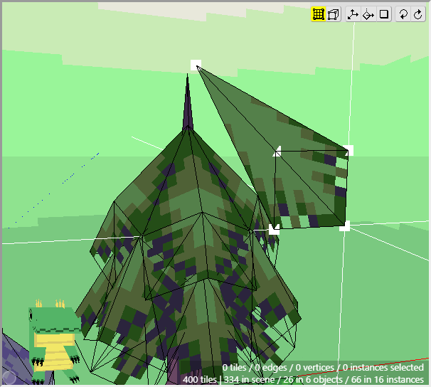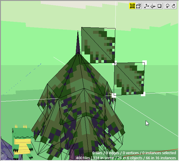 Then take the bush and place that into the scene as well. You can adjust the size of the bush by moving the vertices around. In the example image, I've placed two bushes, with one bush being slightly larger than the other. I also adjusted some of the vertices on the grass tiles to make it a bit irregular.